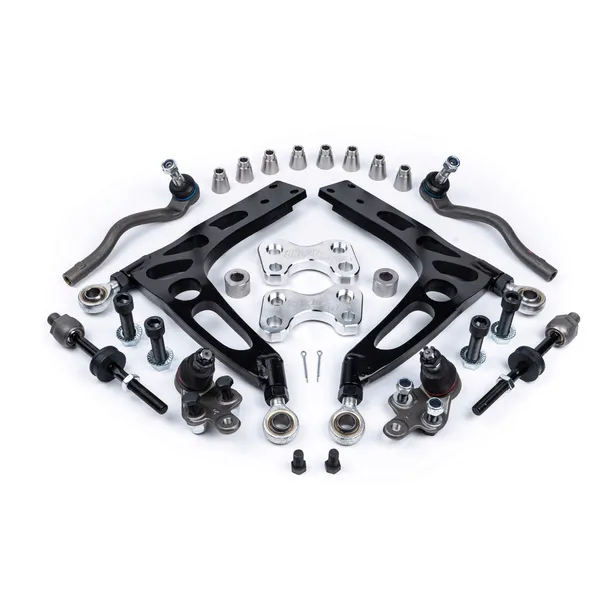 Ponadto zestaw jest wyposażony w sworznie wahaczy wysokiej jakości jak i kompletne drążki kierownicze.